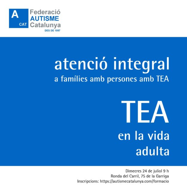 El próximo miércoles 24 de julio a las 9 h. se llevará a cabo la sesión TEA en la vida adulta a cargo de la psicóloga Núria Repiso. Esta sesión está enmarcada dentro del proyecto “Atención integral a familias con personas con TEA”, donde la Federació Autisme Catalunya organiza una serie de conferencias destinadas a…